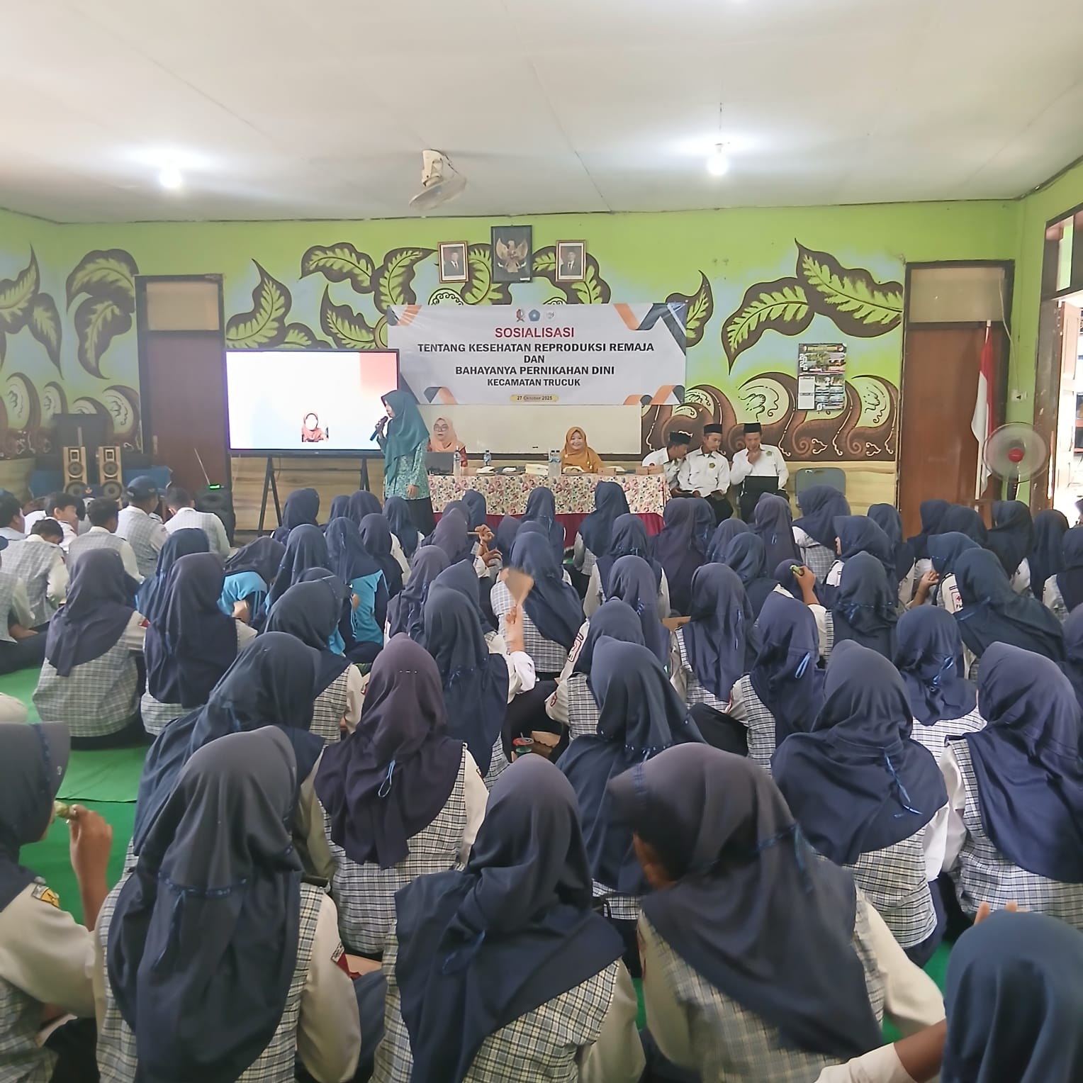 TRUCUK_Bojonegoro.SMP Negeri Trucuk menjadi tuan rumah kegiatan sosialisasi kesehatan reproduksi remaja dan bahayanya pernikahan dini yang diselenggarakan oleh Tim Penggerak PKK Kecamatan Trucuk dan Kepala Puskesmas Trucuk pada Senin, 27 Oktober 2025.