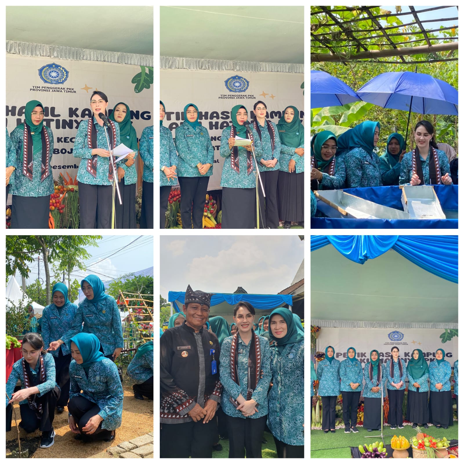 Trucuk, Bojonegoro - Ketua Tim Penggerak PKK Provinsi Jawa Timur, Ibu Arumi Bachsin Emil Dardak, SE, melakukan kunjungan ke Kampung Aku Hatinya PKK di Desa Guyangan, Kecamatan Trucuk, Bojonegoro, pada Kamis (4/12/2025). Kegiatan ini bertujuan mempromosikan pemanfaatan pekarangan dan meningkatkan ketahanan pangan keluarga melalui program HATINYA PKK (Halaman, Asri, Teratur, Indah dan Nyaman).
