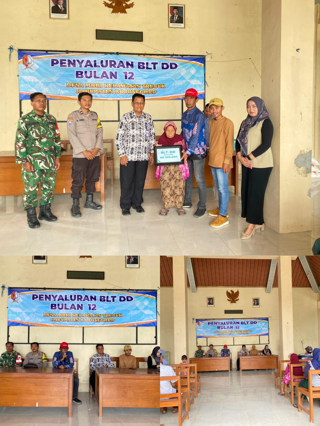 Trucuk, Bojonegoro - Penyaluran Bantuan Tunai (BLT) Dana Desa Bulan 12 Tahun Anggaran 2025 telah dilaksanakan di Balai Desa Mori, Kecamatan Trucuk pada Jumat (19/12/2025). Acara yang dimulai pukul 10.00 WIB ini dihadiri oleh Camat Trucuk, Plt Kasi Pem/Kasi PMD, Kepala Desa Mori beserta perangkat, Babinsa, Babinkamtibmas, dan 16 orang Keluarga Penerima Manfaat (KPM).