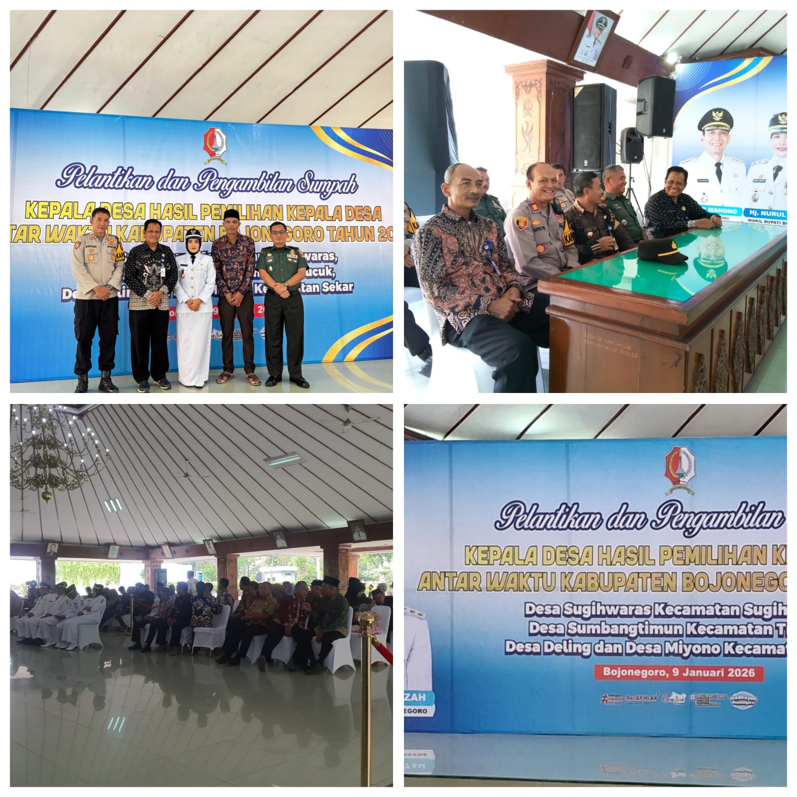 Bupati Bojonegoro, H. Setyo Wahono, melantik Yetti Kus Endang sebagai Kepala Desa Sumbangtimun, Kecamatan Trucuk, hasil Pilkades Antar Waktu 2026, di Pendopo Malowopati Pemkab Bojonegoro, Jumat (9/1/2026) pukul 07.30 WIB .