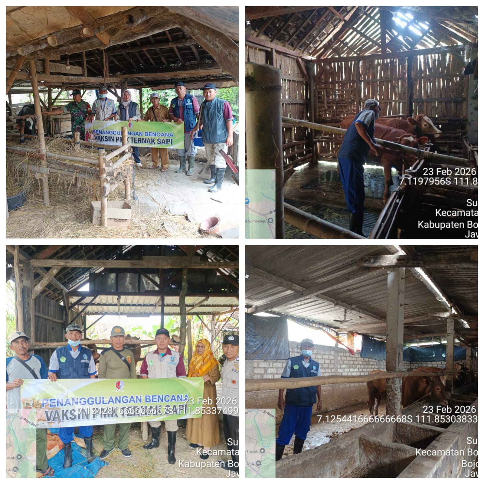 Kecamatan Trucuk, Bojonegoro - Pemerintah Desa Sumberjo, Kecamatan Trucuk, Kabupaten Bojonegoro, melaksanakan kegiatan penanggulangan bencana vaksin PMK (Penyakit Mulut dan Kuku) ternak sapi, Senin (23/2/2026). Sebanyak 100 ekor sapi di desa tersebut diberikan vaksin untuk mencegah penyebaran penyakit PMK.