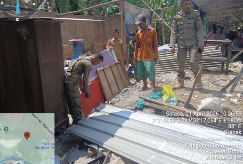 TRUCUK, BOJONEGORO – Menindaklanjuti laporan masyarakat terkait fenomena alam yang mengancam pemukiman, tim gabungan dari Satpol PP Kabupaten Bojonegoro, Babinsa, dan Pemerintah Desa Sranak melakukan pemantauan langsung ke lokasi tanah ambles di wilayah RT 04 dan RT 05, Desa Sranak, Kecamatan Trucuk, pada Selasa (21/04/2026).