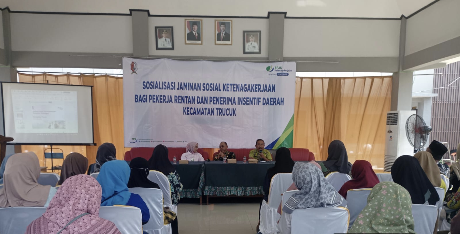 Kecamatan Trucuk, Bojonegoro - Kantor Kecamatan Trucuk menjadi pusat kegiatan Sosialisasi Jaminan Sosial Ketenagakerjaan bagi Pekerja Rentan dan Penerima Insentif Daerah, yang...